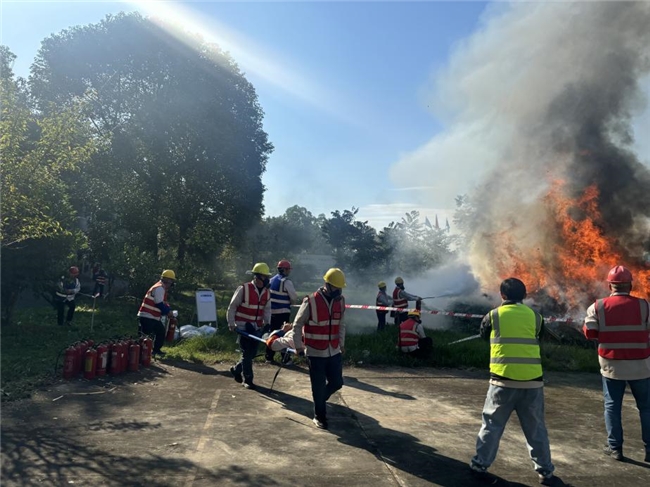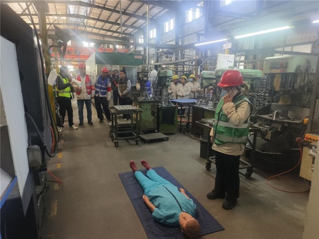 演练活动聚焦机械行业安全风险,设置消防应急、机械伤害事故两大实战科目。消防演练模拟粉尘爆炸火灾致人受伤场景,员工迅速执行紧急停车、切断能源、初步灭火,并有序疏散与救治;机械伤害演练模拟人员被机器绞伤,警戒组、医疗组、抢险组协同完成现场警戒、伤员急救与隐患排查。在工伤预防专家调度下,参演人员反应迅速、配合密切,高效完成应急任务。