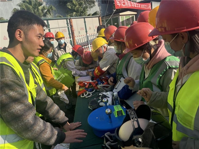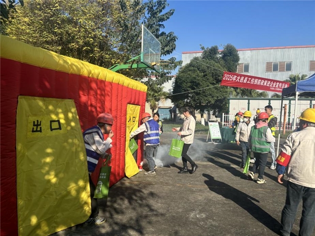 活动现场同步开展工伤预防政策宣传与沉浸式互动体验。政策咨询区,员工围绕工伤风险、参保权益等踊跃提问,工作人员逐一解答;互动体验区设有消防逃生屋、触电模拟体验、劳保用品穿戴实操等项目,让员工在参与中深化安全知识理解与运用。