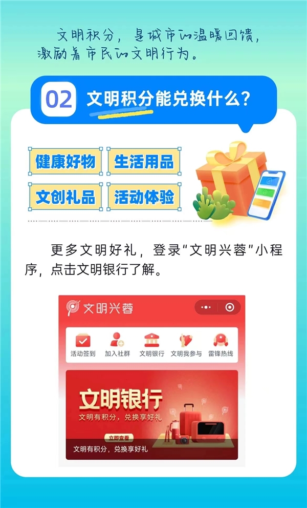 进入“文明银行”点击“精选好物”专区,多种品类暖心上线,使用积分即可兑换。让每一份文明善举,都能兑换冬日专属温暖。